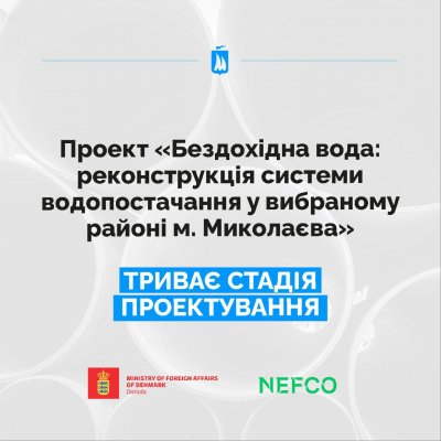Триває реалізація проєкту “Бездохідна вода: реконструкція системи водопостачання у вибраному районі міста Миколаєва”.