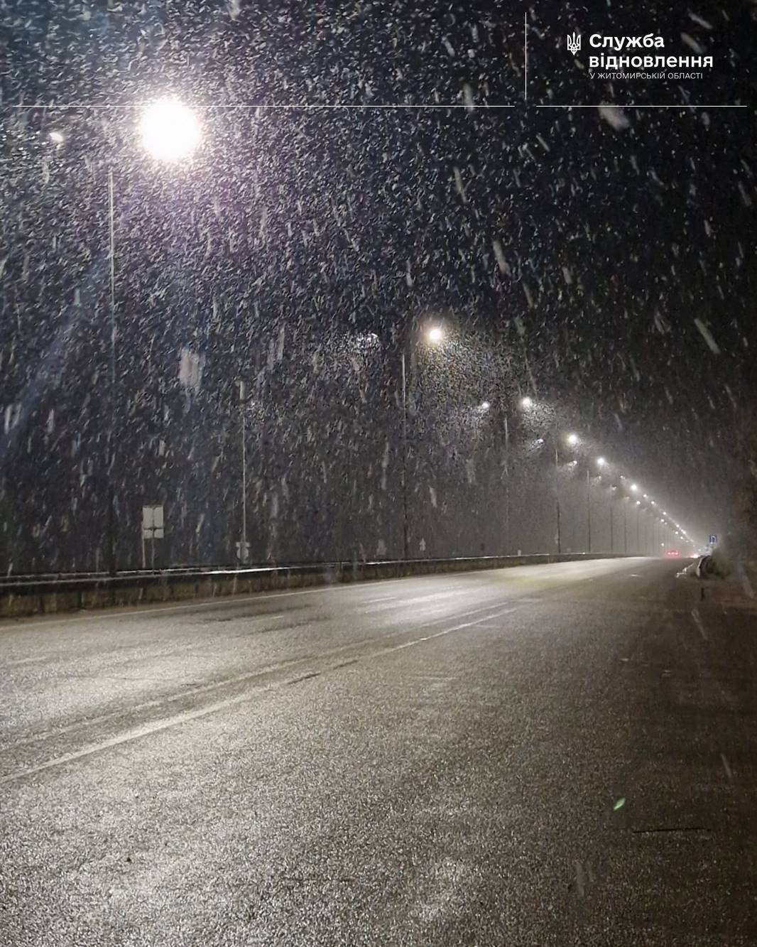 По області спостерігався мокрий сніг та зниження температури повітря, що вимагало обробки покриття доріг протиожеледними матеріалами. Про це інформує Служба відновлення та розвитку інфраструктури в Житомирській області.
