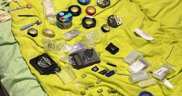 Уже пд час невідкладного обшуку в помешканні фігуранта правоохоронці вилучили банки, пакунки, згортки та зіп-пакети з речовинами, схожими на психотропні, засоби для фасування, електронні ваги, чорнові записи та інші речові докази незаконної діяльності.