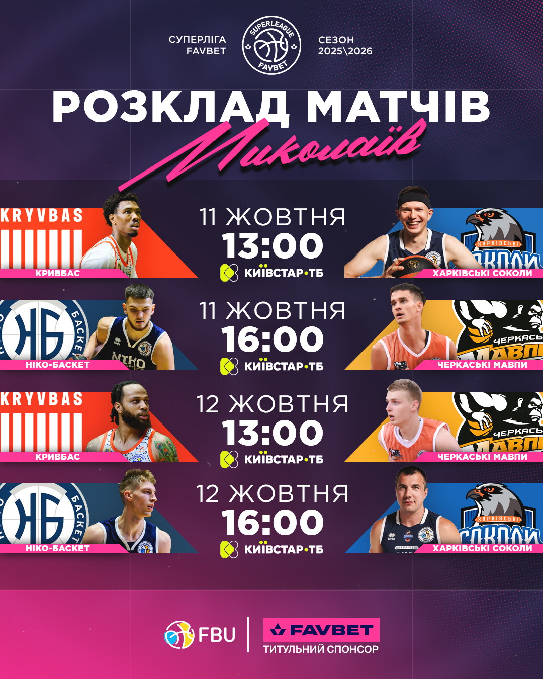 Другий тур Суперліги Favbet: розклад трансляцій 11-12 жовтня – Федерація баскетболу України