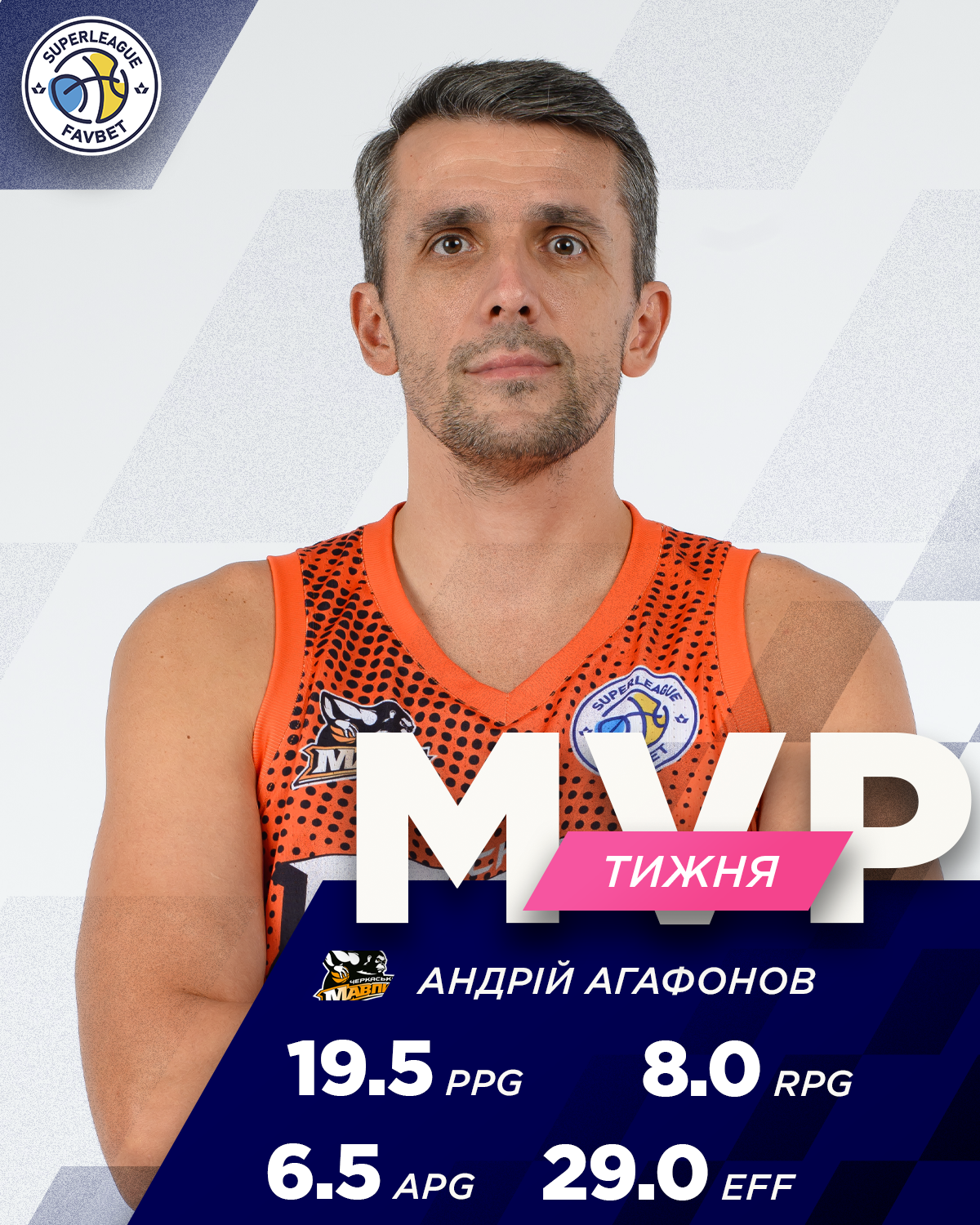 MVP другого тижня визнано центрового Черкаських Мавп Андрія Агафонова, який допоміг своїй команді здобути дві перемоги в Миколаєві.
