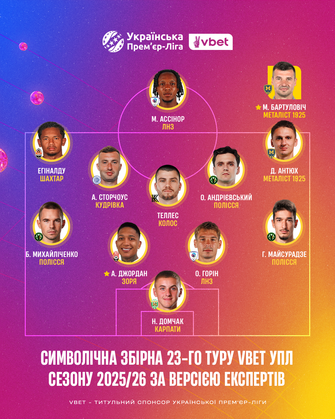 Українська Прем’єр-Ліга продовжує відзначати героїв сезону 2025/26 і склала символічну збірну 23-го туру Чемпіонату УПЛ, а також назвала найкращого футболіста та найкращого тренера 23-го туру. Традиційно це було зроблено разом з ведучими, експертами, коментаторами УПЛ.ТБ та представниками провідних спортивних ЗМІ України. Цього разу їх було 34.