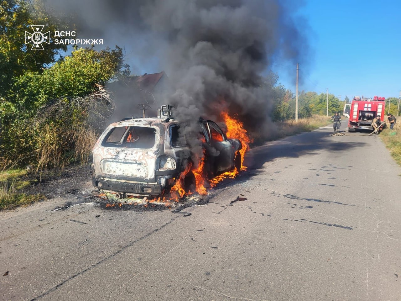 Через удари ворога у Запорізькій області горіли квартири у п’ятиповерхівках, автівка та два гектари рослинності.