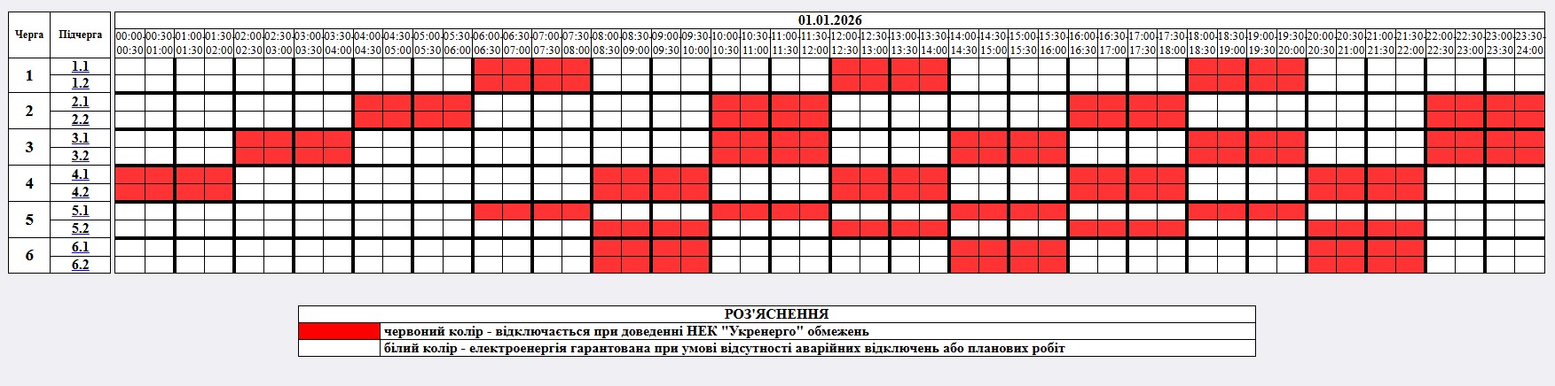 01 січня, за розпорядженням НЕК «Укренерго», з 00:00 до 23:59 на Житомирщині вимушено будуть застосовуватись заходи обмеження споживання електроенергії.