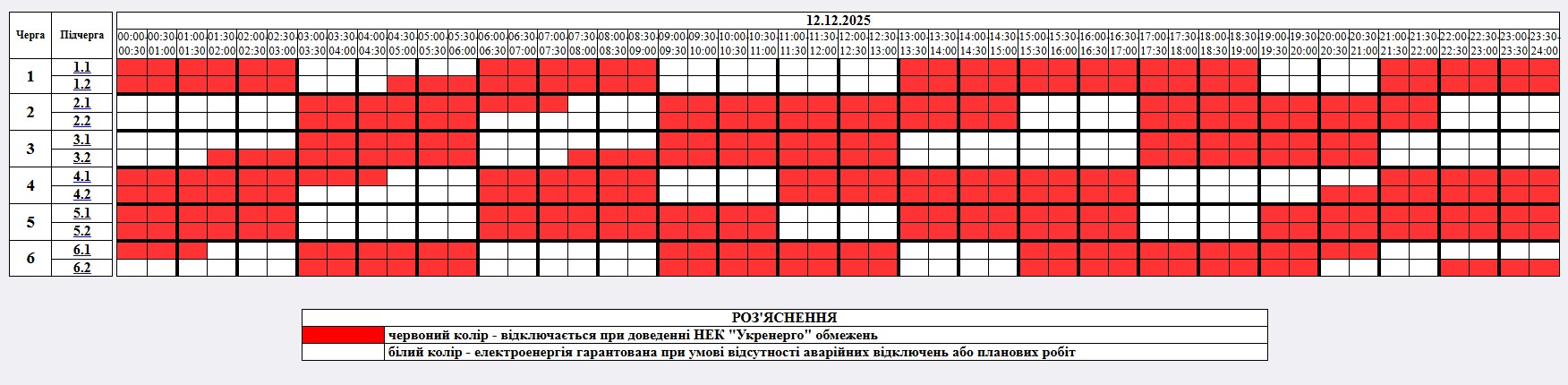 - Графіки погодинних відключень з 00:00 до 23:59 – обсягом від 2 до 4 черг;