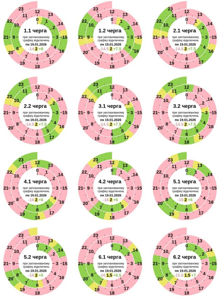 Графік погодинних відключень світла на 19 січня: