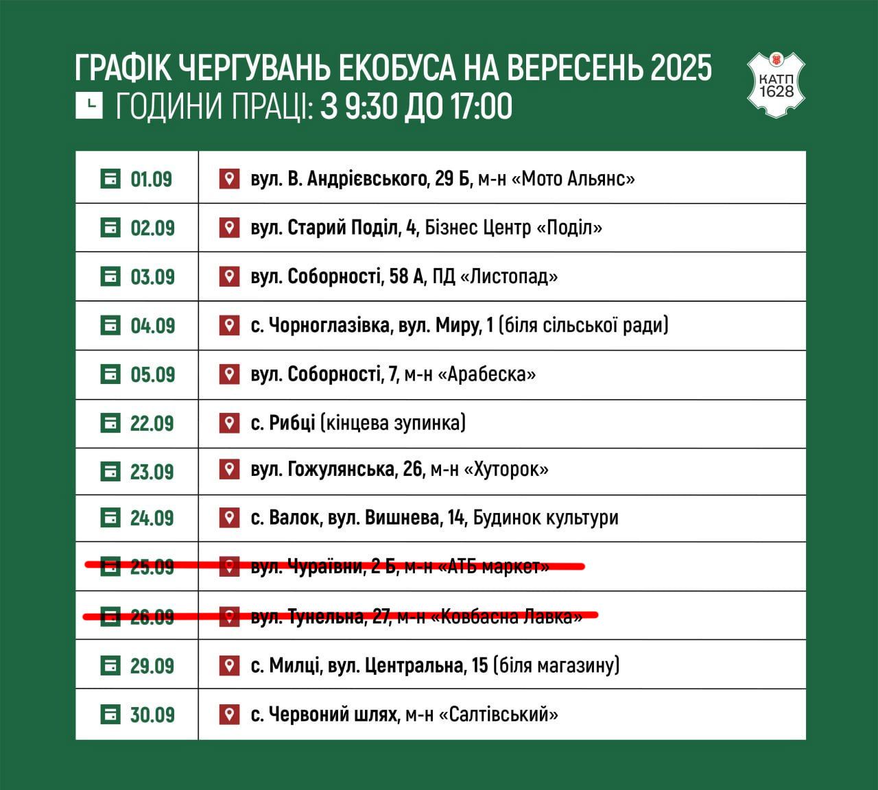Доповнення. 25 та 26 вересня екобус не прийматиме відходи у зв’язку з технічними обставинами.