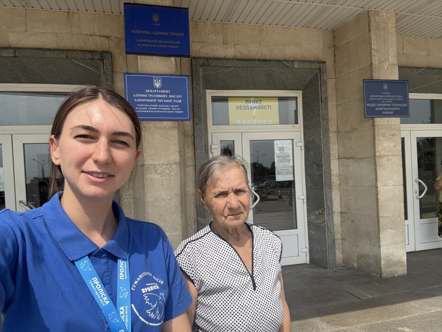 Запорізька команда Гуманітарної місії “Проліска” забезпечила пані Лідії безпечний виїзд та супроводжувала її на всіх етапах відновлення документів і соціальних гарантій.