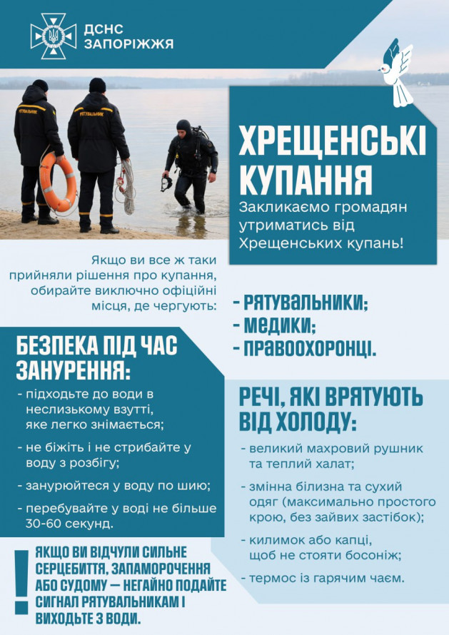 Напередодні свята Водохреща запорізькі рятувальники закликали людей бути відповідальними.
