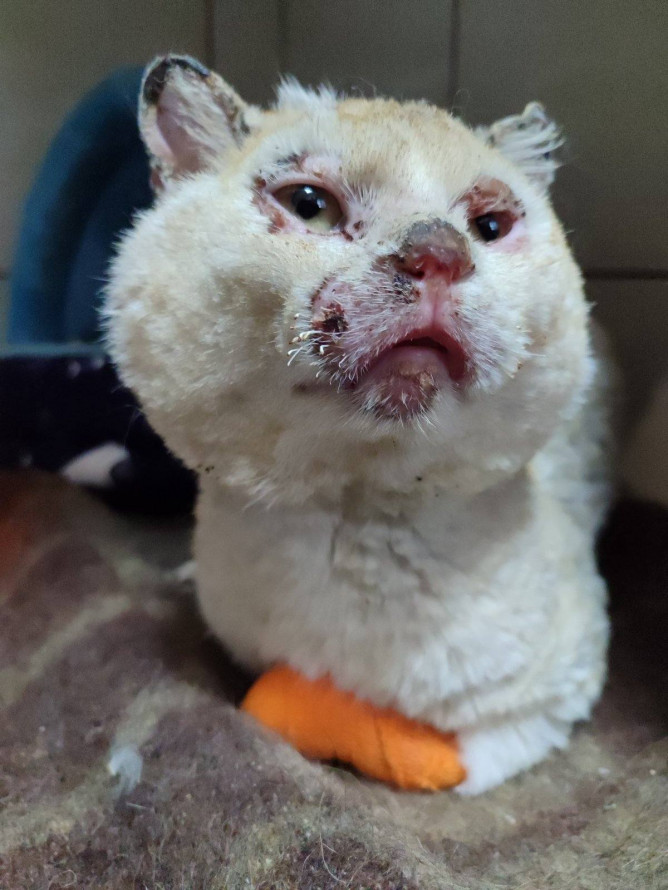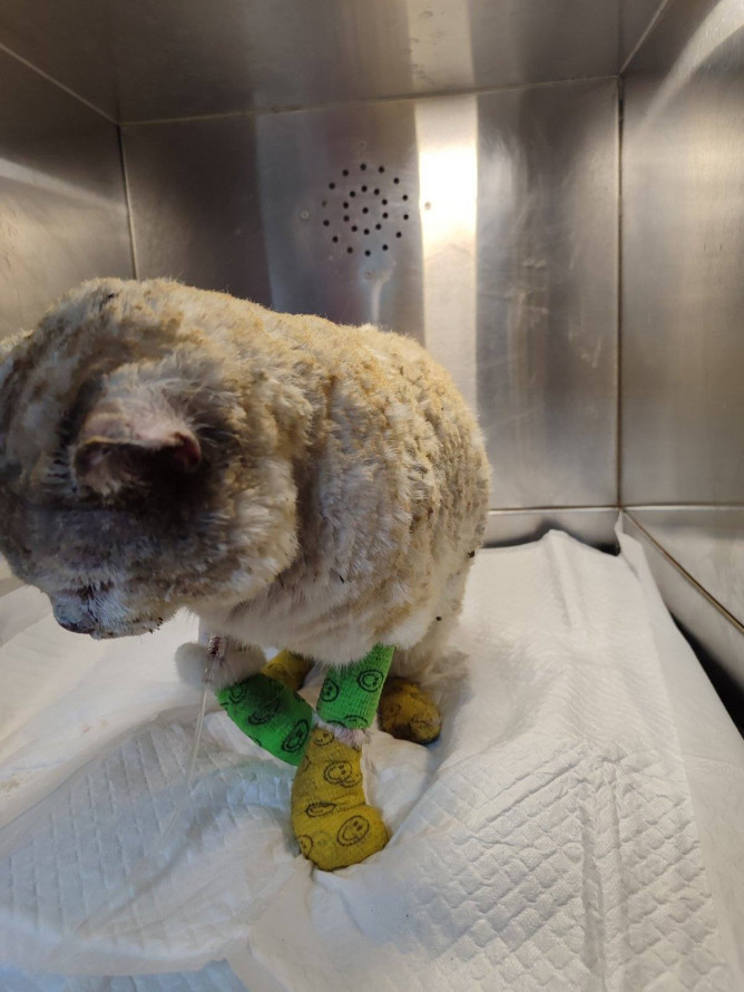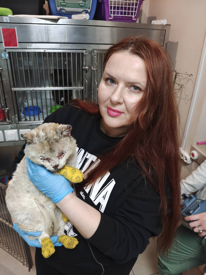 Через значні опіки йому знадобилися інтенсивна терапія, знеболення, регулярні обробки ран і перев’язки. Лікарі також провели складну хірургічну обробку уражених ділянок — видалили некротичні тканини на вушках, лапках, мордочці та провели необхідне оперативне втручання. Попереду — тривалий період відновлення у стаціонарі.