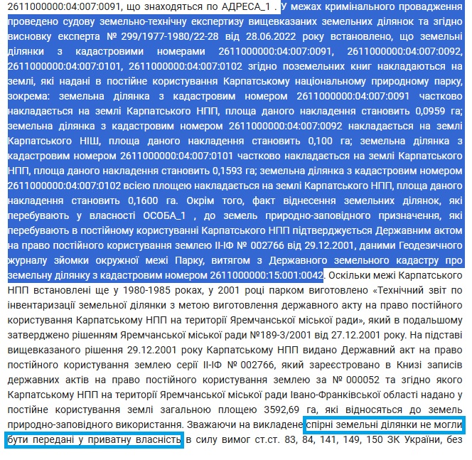 А ось ще одна справа (№354/1333/24), але з протилежним результатом: ідеться про землі Карпатського національного природного парку, які були незаконно приватизовані.