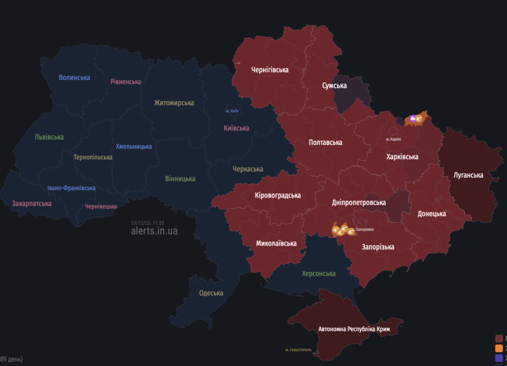Мапа тривог і загрози для Полтавщини 13 грудня