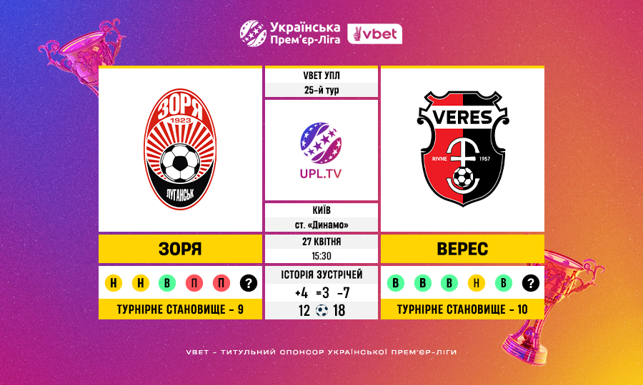 Безвиграшна серія Зорі в матчах з Вересом триває в УПЛ 5 ігор: 3 нічиї та 2 поразки.