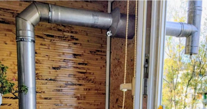 195 Труба від «буржуйки» з балкона на вулицю / Фото: Микола Лучка