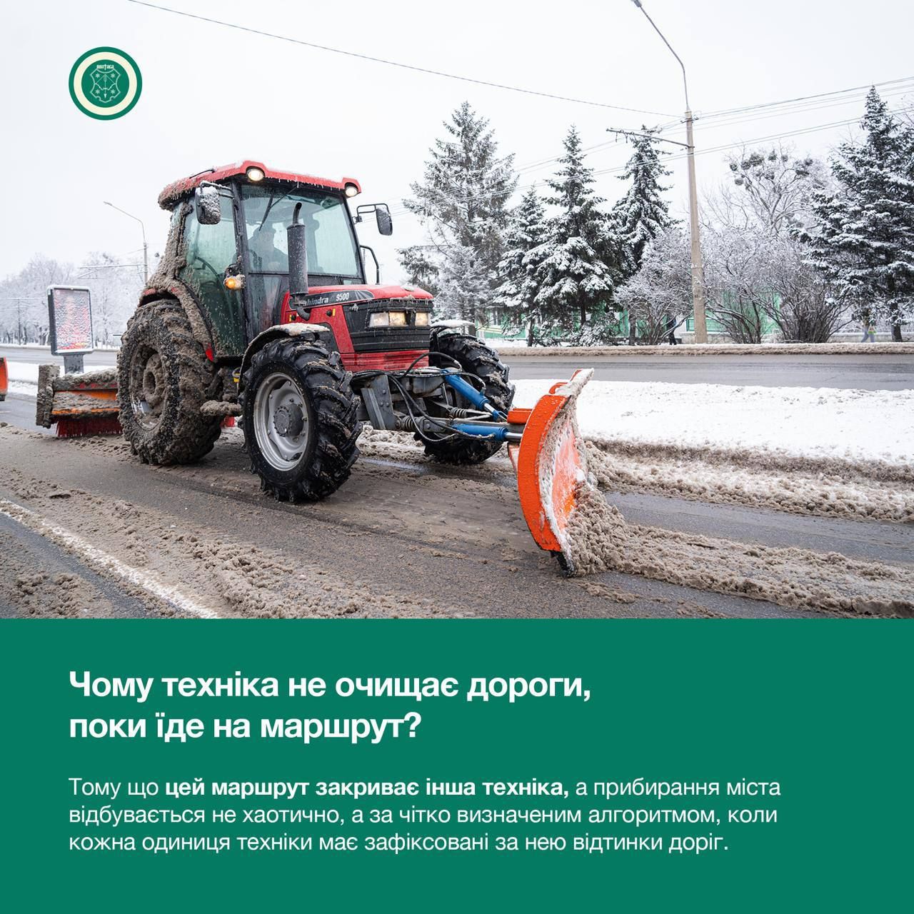 У міській раді пояснюють, що під час снігопадів прибирання відбувається за чітко визначеним алгоритмом: спочатку магістральні дороги, мости та маршрути громадського транспорту, далі — другорядні вулиці, житлові квартали та дворові проїзди. Одночасно очистити всі вулиці неможливо через протяжність дорожньої мережі та обмежену кількість техніки.