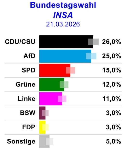 А загалом по цілій Німеччині партійна соціологія станом на 21 березня 2026 року є такою: