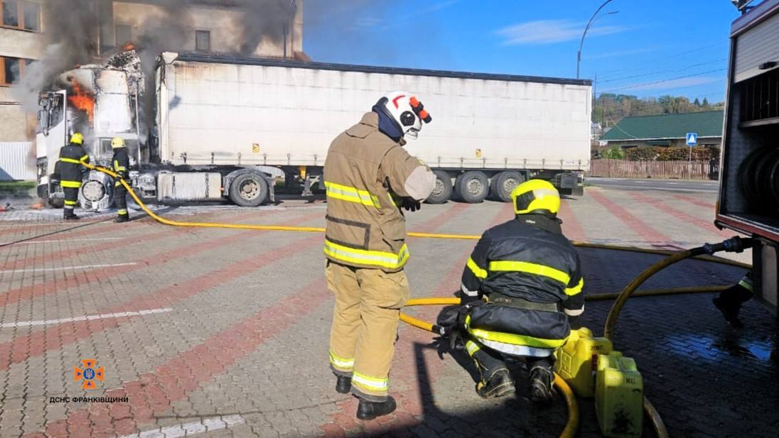 Так, 22 жовтня о 11:05 до Служби порятунку надійшло повідомлення про пожежу вантажного автомобіля в місті Снятин.