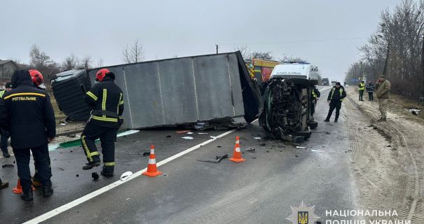 Внаслідок зіткнення 52-річний водій вантажівки від отриманих травм помер на місці. Травмованого 48-річного водія легковика доставили до лікарні.