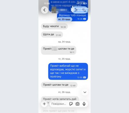 Одному з мобілізованих, який прибув до навчального центру для проходження підготовки інструктор запропонував допомогти залишити територію полігону. «Вартість» повернення додому становила 3 тисячі доларів США. За домовленістю, 1 тисячу доларів чоловік мав передати безпосередньо на полігоні, ще 2 тисячі — його мати після вивезення сина з навчального центру.