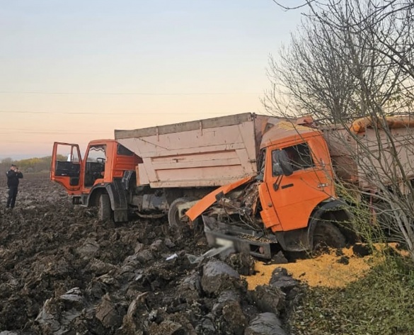 Водій вантажівки "КамАЗ" не впорався з керуванням і зіткнувся з іншим "КамАЗом", припаркованим на узбіччі. У момент зіткнення керманич другого автомобіля перебував поруч із транспортним засобом.
