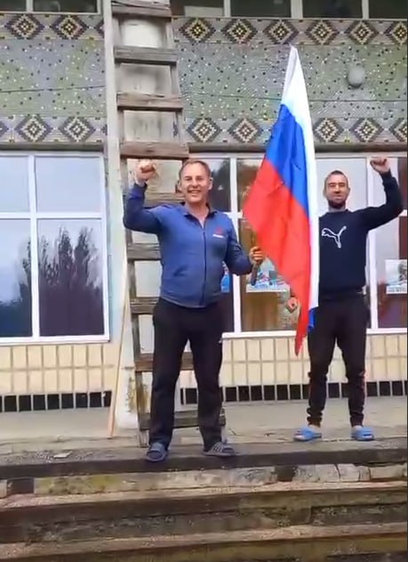 Під час встановлення прапора чоловіки публічно виголошували гасла на кшталт “Да здравствует россия” та “Мы победим”, супроводжуючи свої дії демонстративним хрещенням, підняттям кулаків і зверненням до присутніх.