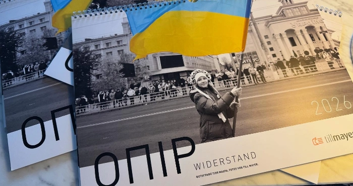 Відомий німецький військовий репортер і фотограф Тіль Маєр, який з 2017 року документує війну в Україні, презентував календар «Widerstand» («Опір») зі своїми світлинами. На обкладинку він обрав знімок, зроблений 11 листопада 2022 року, — у день звільнення Херсона.