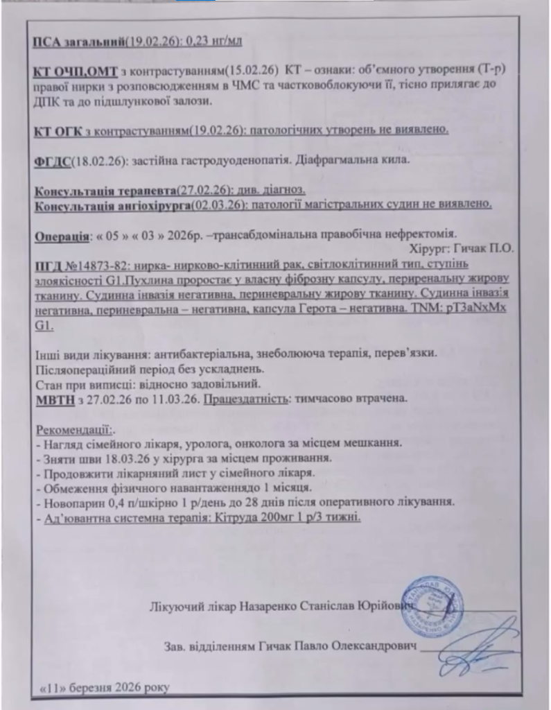 Нині сам рятувальник потребує допомоги: у нього діагностували нирково-клітинний рак світлоклітинного типу першого ступеня злоякісності. Чоловік уже переніс складну операцію – йому видалили нирку.