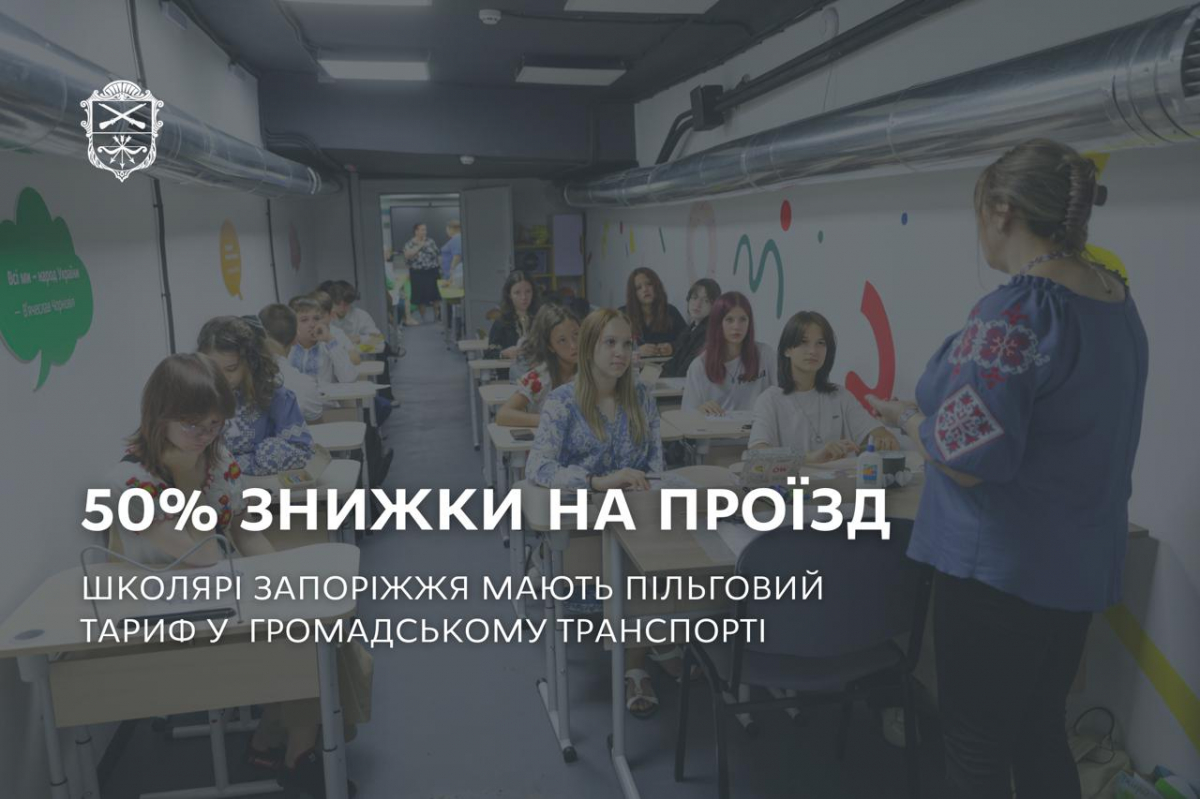 У Запоріжжі триває дія пільгового проїзду для школярів — учні закладів загальної середньої освіти мають право на 50% знижку при оплаті за проїзд у громадському транспорті. Про це повідомила на своїй офіційній сторінці секретар Запорізької міської ради та виконувачка обовʼязків міського голови Регіна Харченко.