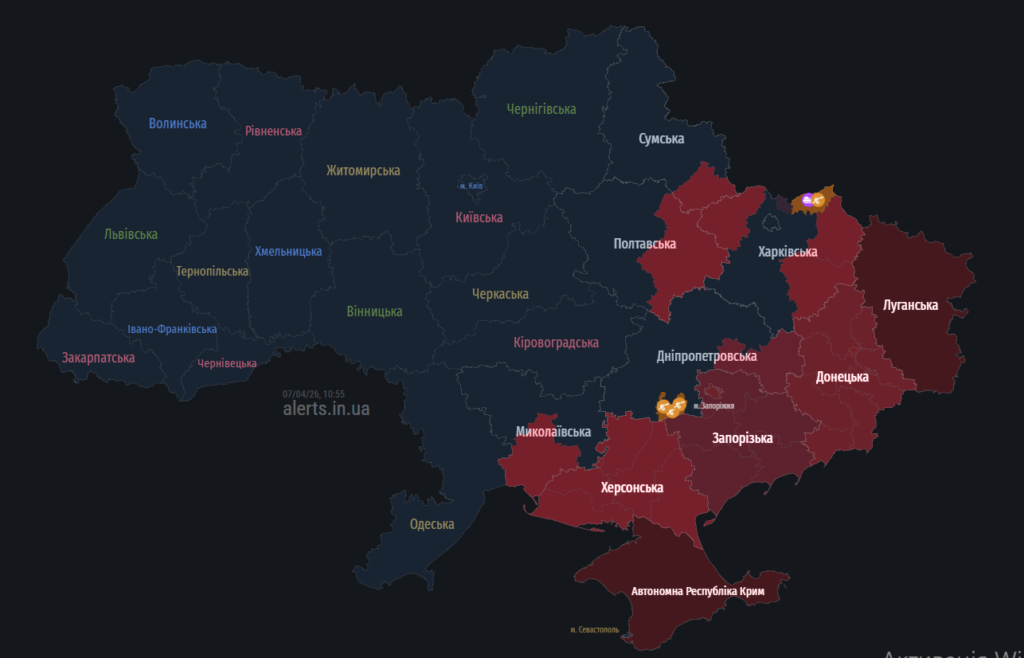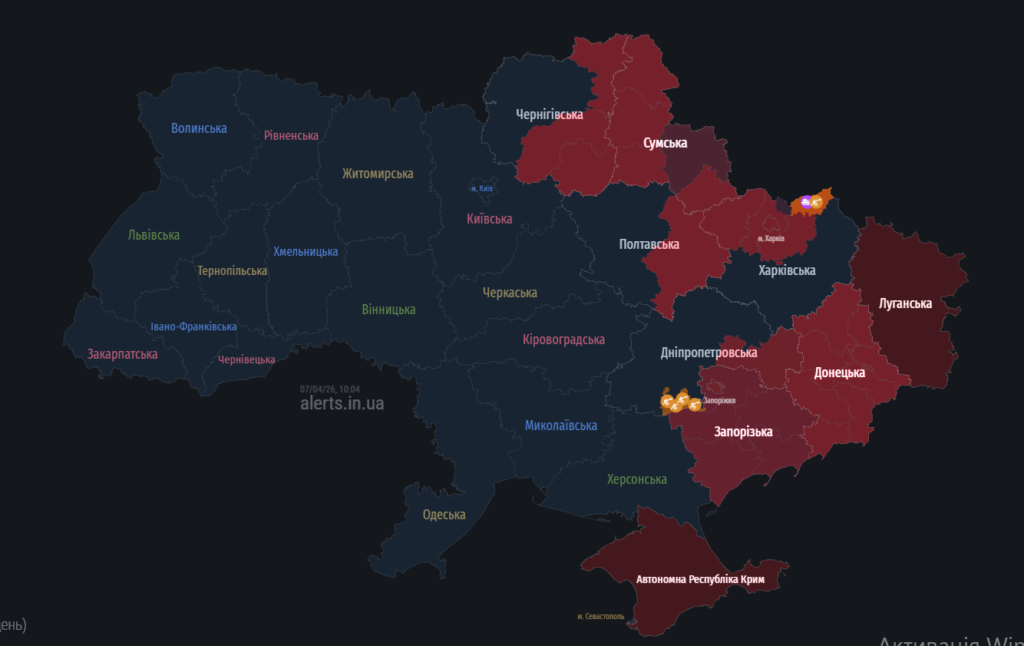 У ніч на 7 квітня противник атакував 110 ударним БпЛА. Повітряний напад відбивали авіація, зенітні ракетні війська, підрозділи РЕБ та безпілотних систем, мобільні вогневі групи Сил оборони України.