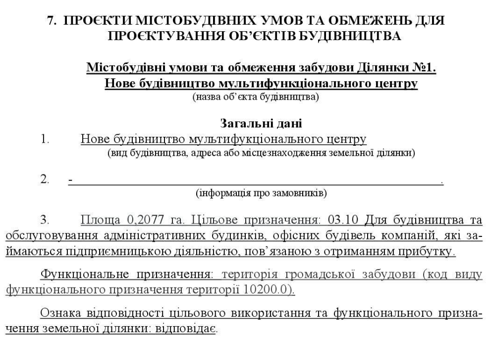 Скрин з витягу розділу 7 «Проєкти містобудівних умов та обмежень для проєктування об’єктів будівництва»