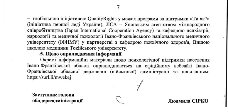 У відповіді, датованій 10 лютого 2026 року та підписаній заступницею голови облдержадміністрації Людмилою Сірко, надано конкретні дані про організацію психологічної, психіатричної та психосоціальної допомоги, яка здійснюється через структурні підрозділи ОДА, заклади охорони здоров’я, органи місцевого самоврядування, а також за участі громадських і міжнародних організацій.