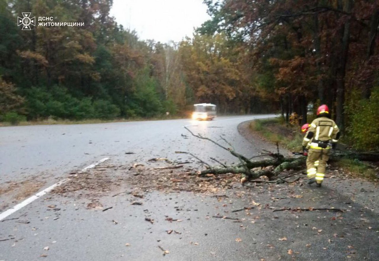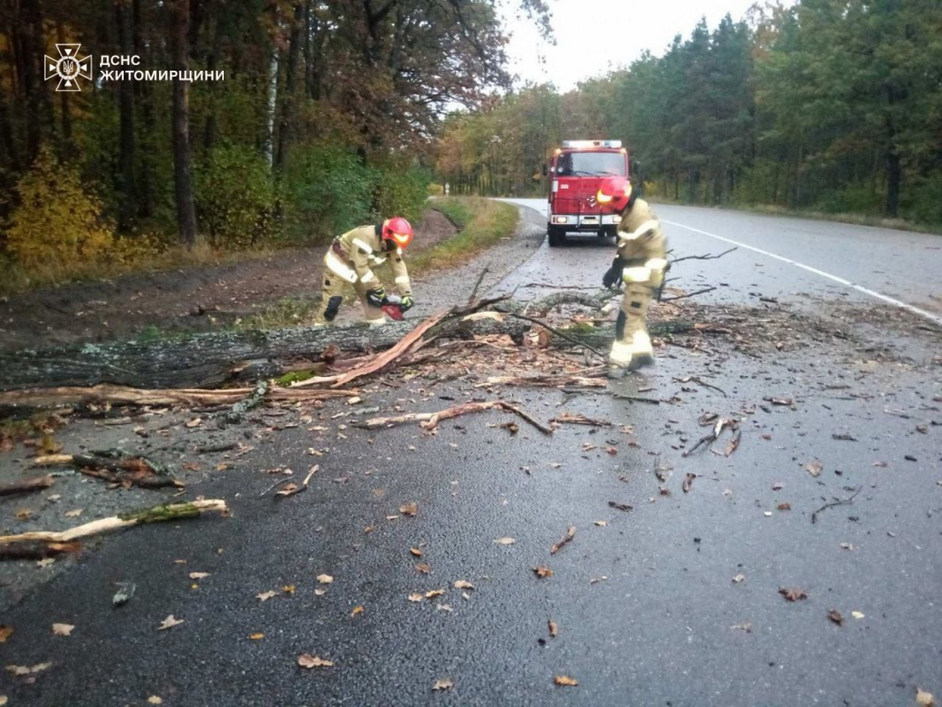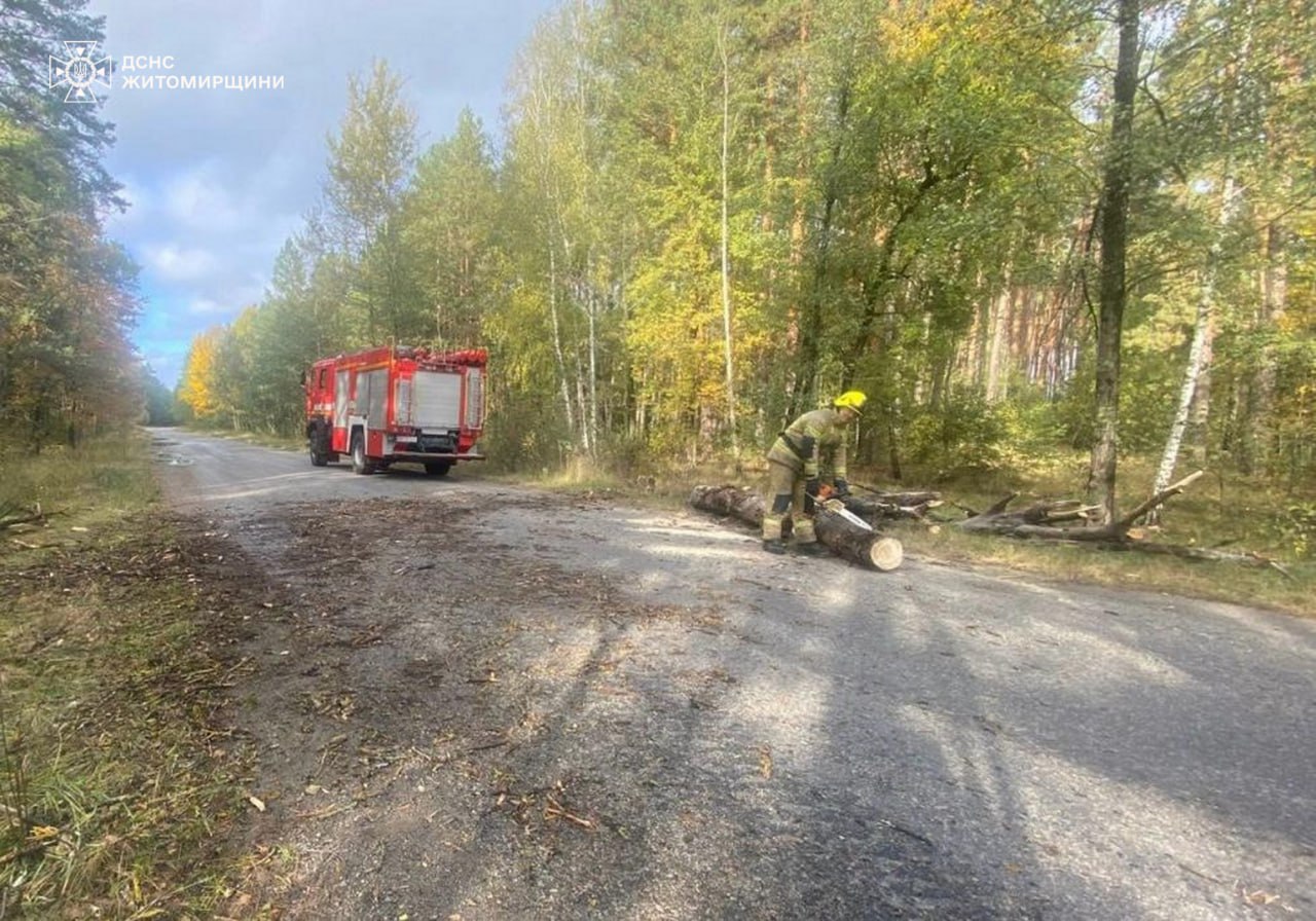 За допомогою бензопил рятувальники розрізали та прибрали на узбіччя три дерева.