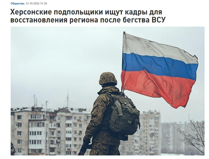 “Після втечі зелених фашистів наш кадровий резерв отримає робочі місця, збережене майно та повний захист. Ті, хто виявить бажання, зможуть піднятися кар’єрними сходами й долучитися до відбудови нової, вільної Херсонщини”, — заявляють “підпільники”, традиційно повторюючи наративи російських медіа.