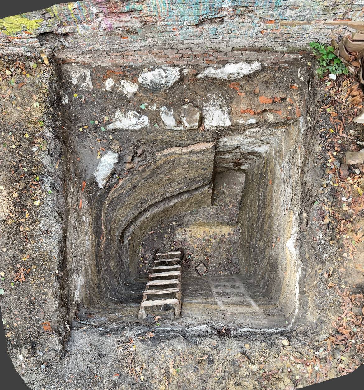 Дослідники виявили прохід, що може вести до коридору чи іншого приміщення зі склепінчастою стелею. Глибина сміття сягала понад два метри; артефакти датуються XVI-XVII століттями. Попередні обстеження (2023 рік) за допомогою відеокамери підтвердили наявність дверей та можливого двоповерхового підземелля.