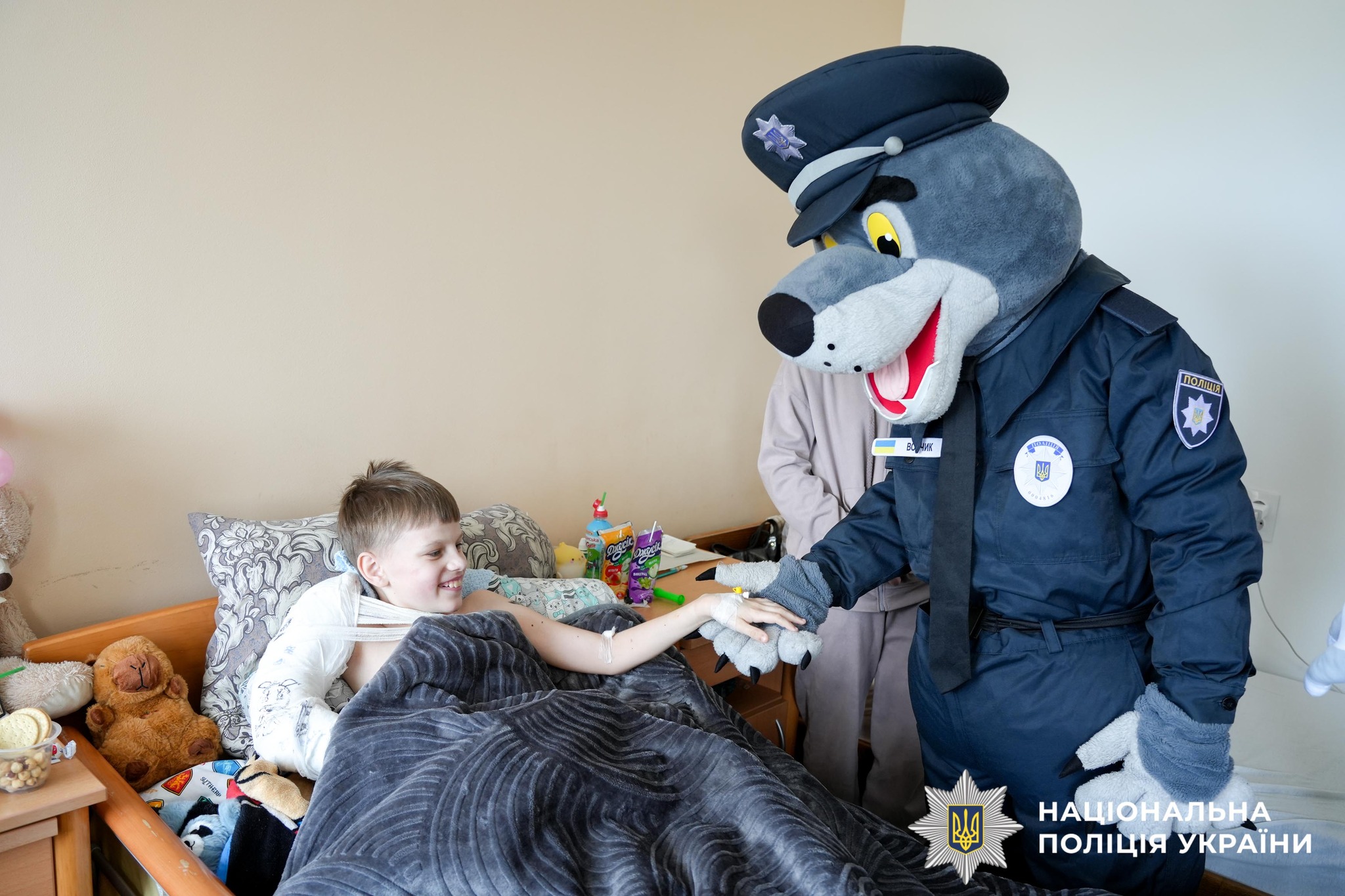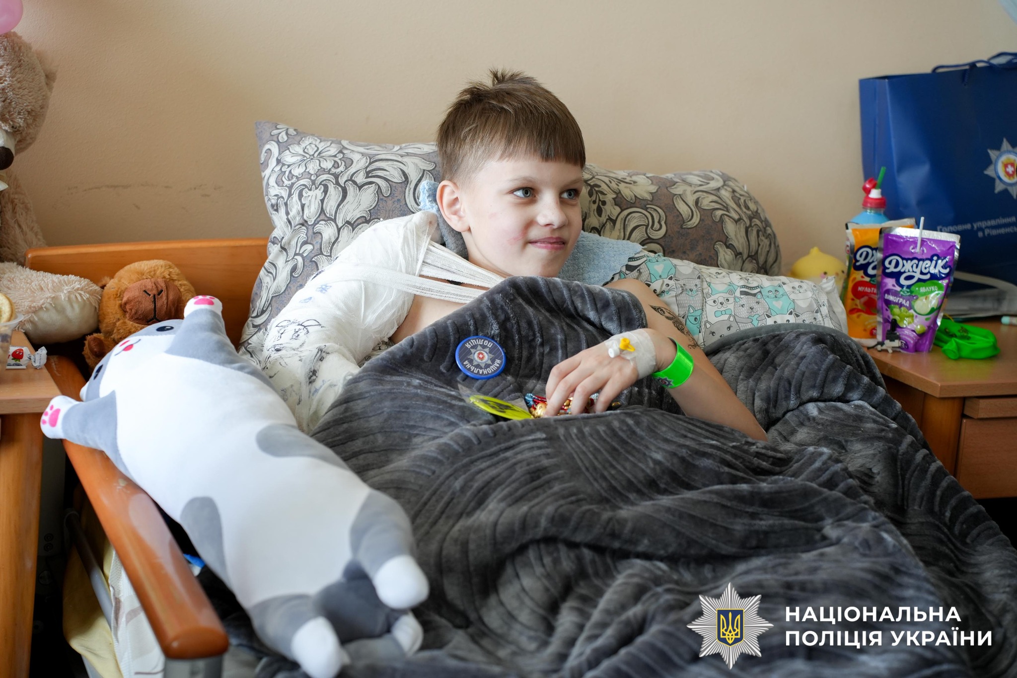 Зараз він перебуває у хірургічному відділенні поруч із найріднішими — мамою та татом. Ця історія глибоко зворушила поліцейських, тож вони вирішили особисто підтримати хлопчика.