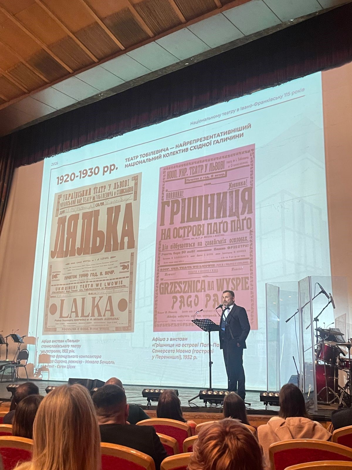 Ростислав Держипільський на відкритті заходів до 115-річчя українського театру в Станіславі розповідає про його історію