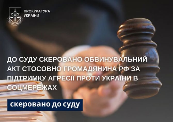 Прокурорами Черкаської обласної прокуратури скеровано до суду обвинувальний акт стосовно 51-річного громадянина російської федерації за фактами виправдовування збройної агресії рф проти України.