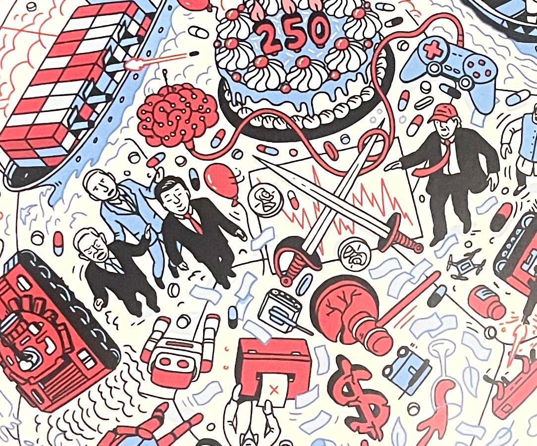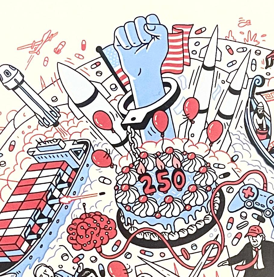 Торт до 250-річчя Америки (4 липня 2026 року, рівно 250 років з дня підписання Декларації про Незалежність США). 250 років – ювілей, але «свята» немає. Лише кілька червоних кульок…