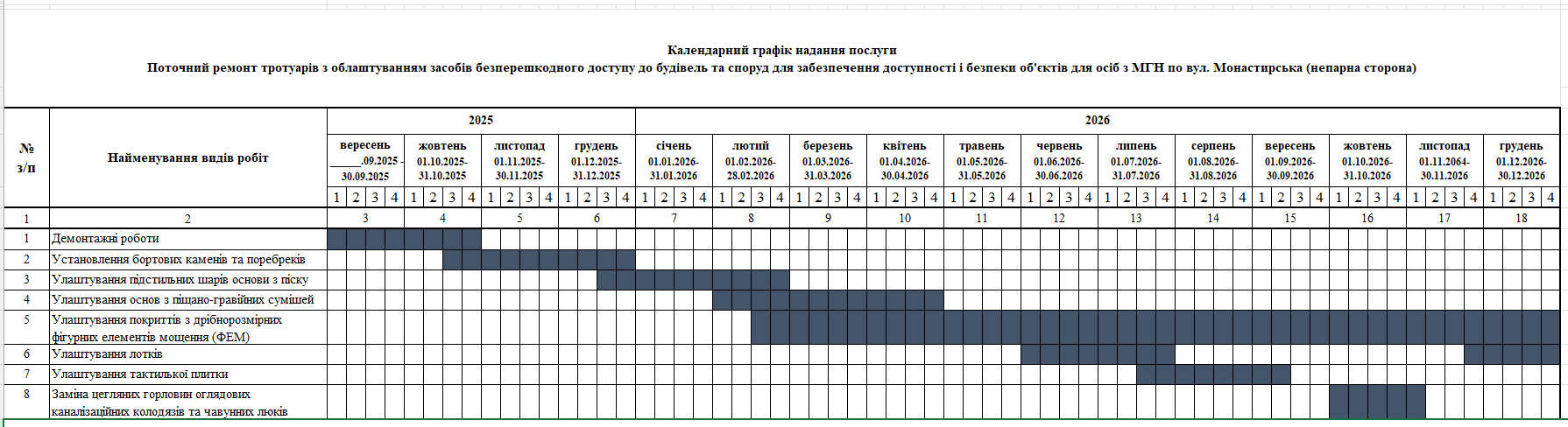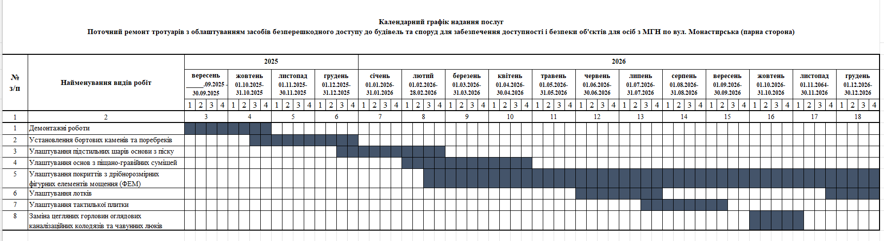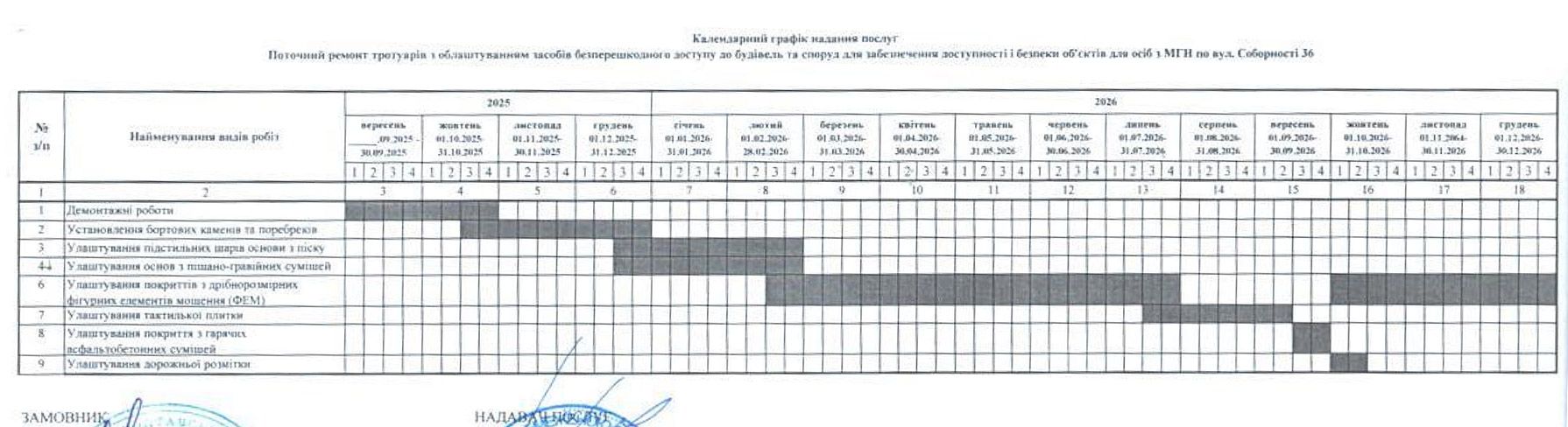 Відповідно до договорів, підрядник взяв на себе зобов’язання до кінця 2026 року виконати поточні ремонти на наступних ділянках: