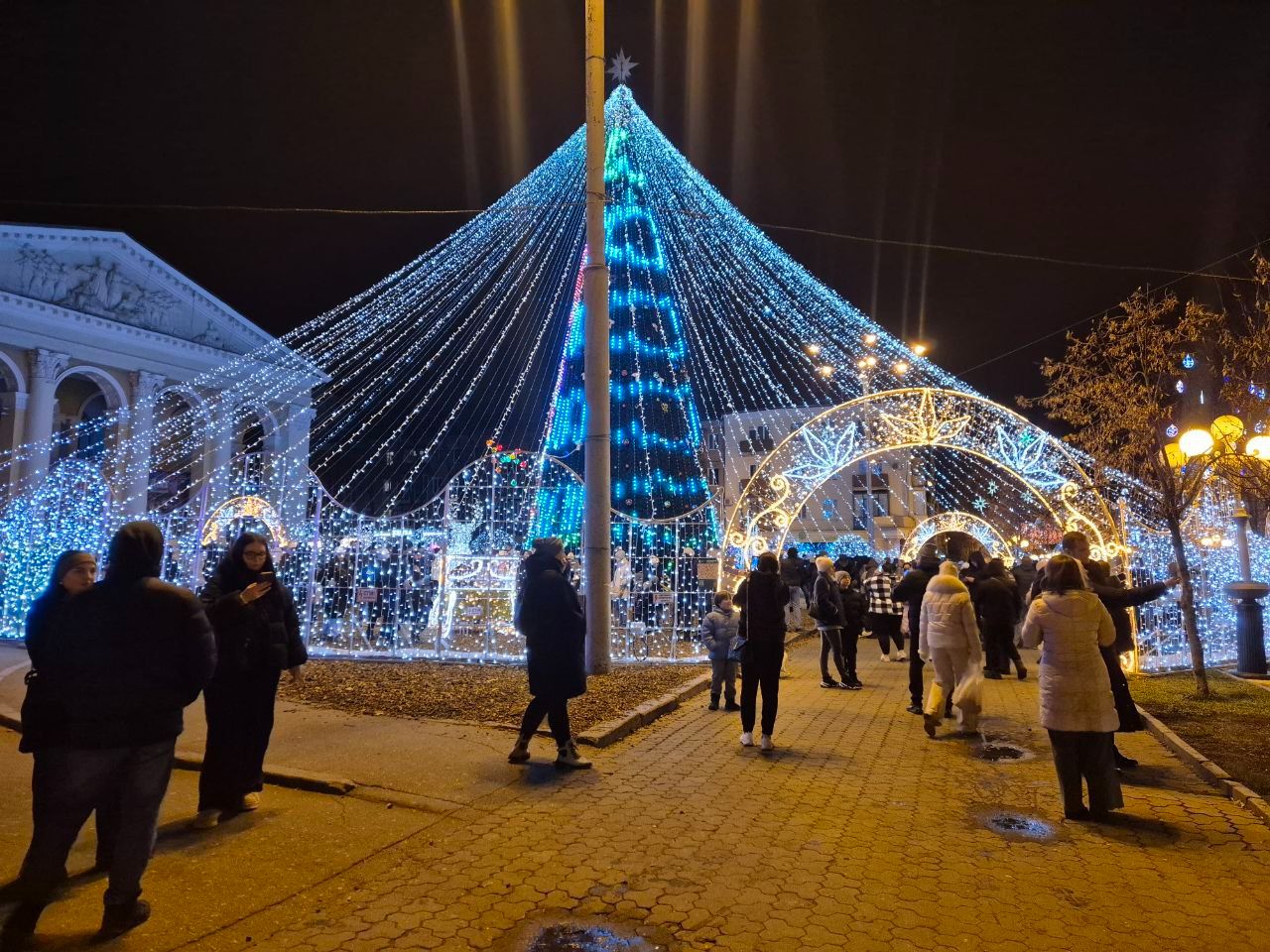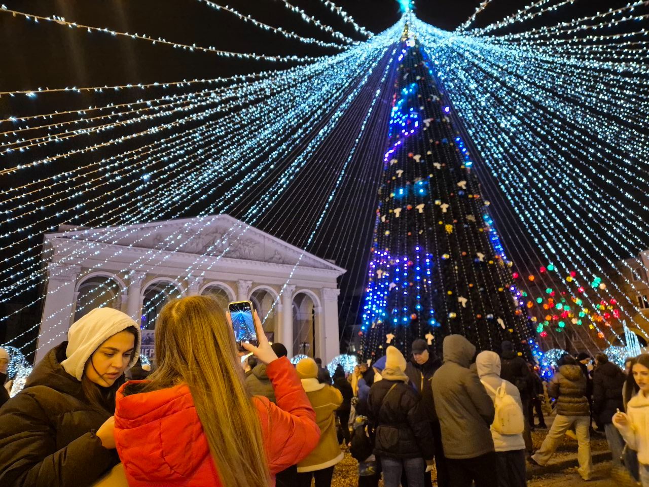 В міськраді повідомили, що головна ялинка міста у черзі 1.1. Але її якось вийшло увімкнути раніше ніж завершилося перемикання черги.