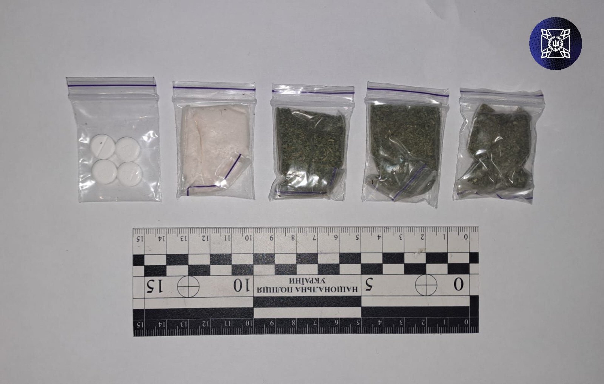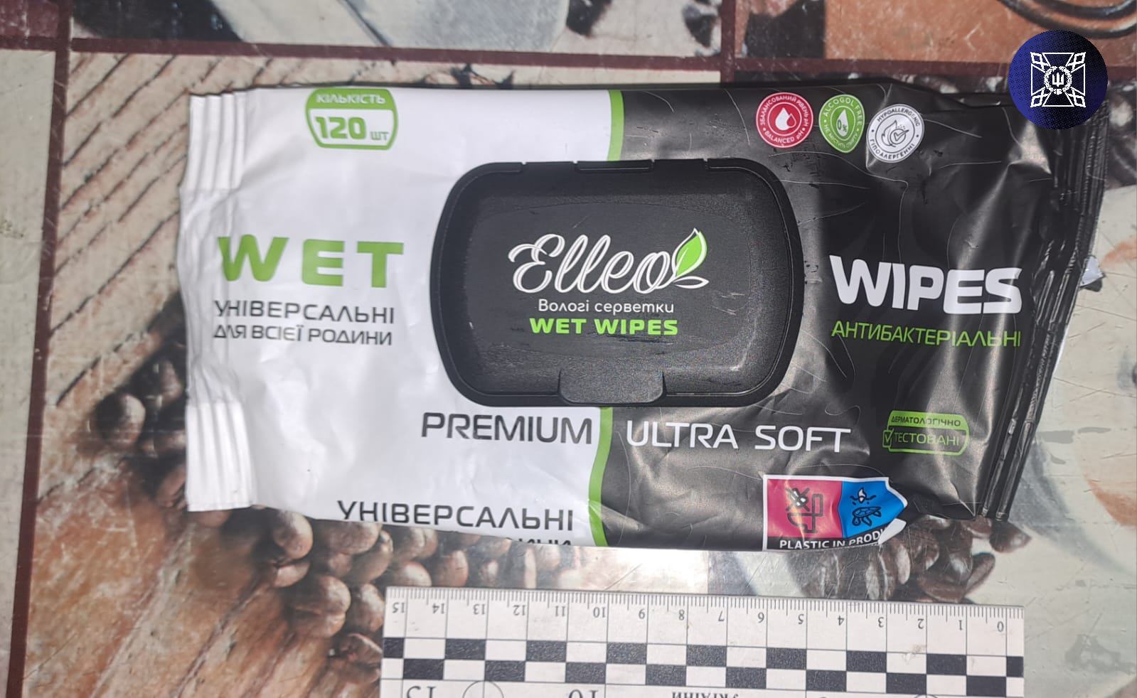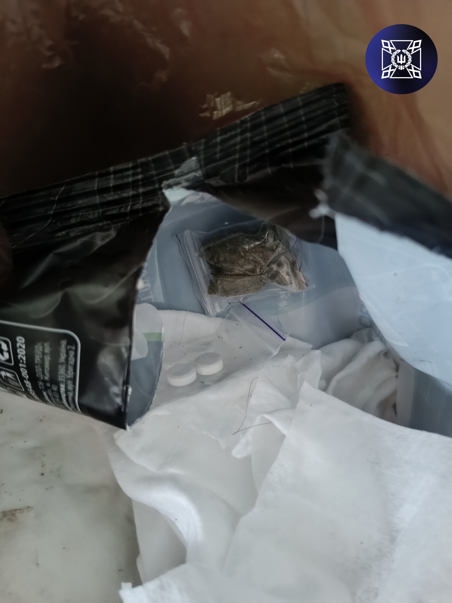 При перевірці поштові посилки, адресованої одному із засуджених, виявлено в упаковці з вологими серветками 3 (три) зіп-пакети з речовиною рослинного походження зеленого кольору, 1 (один) зіп-пакет з порошкоподібною речовиною невідомого походження, та 1 (один) зіп-пакет з таблетками білого кольору в кількості 4 (чотирьох) шт.