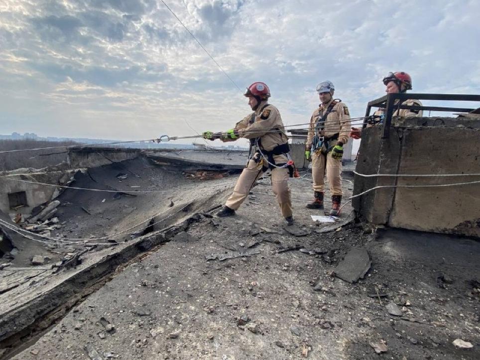 Рятувальники оперативно демонтували небезпечні конструкції, що нависали, а щоб дощ не йшов просто у квартири, комунальники закрили пролом дерев’яним каркасом і плівкою.