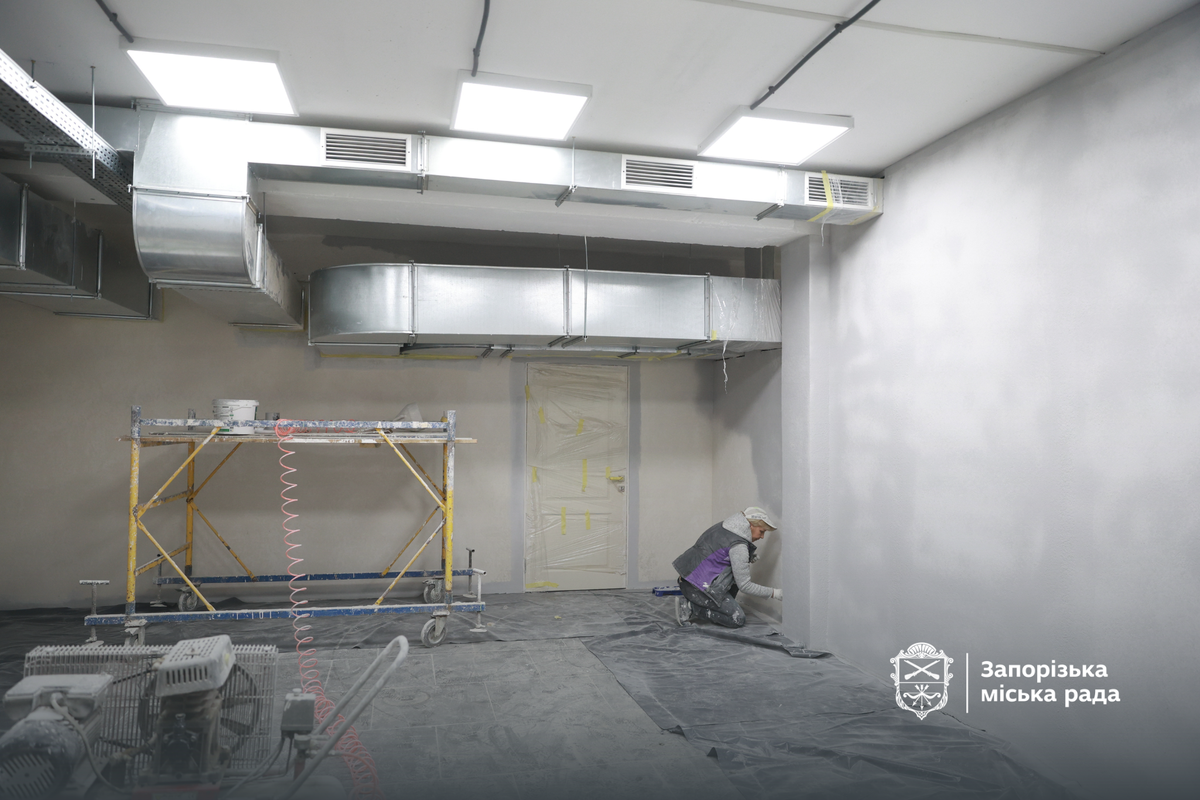 У гімназії №108 Хортицького району Запоріжжя не зупиняється ремонт великого укриття — одного з найпросторіших серед шкільних закладів міста. Про хід робіт розповіли у пресслужбі Запорізької міськради.