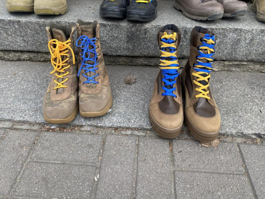 Натомість подія відбулася у форматі символічної інсталяції: берці були виставлені на проспекті, а родини військових та волонтери фотографувалися біля них. Про це Стелла Орел повідомила на своїй сторінці у фейсбуці.