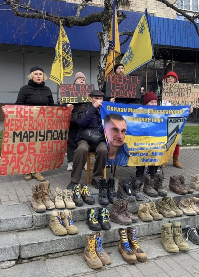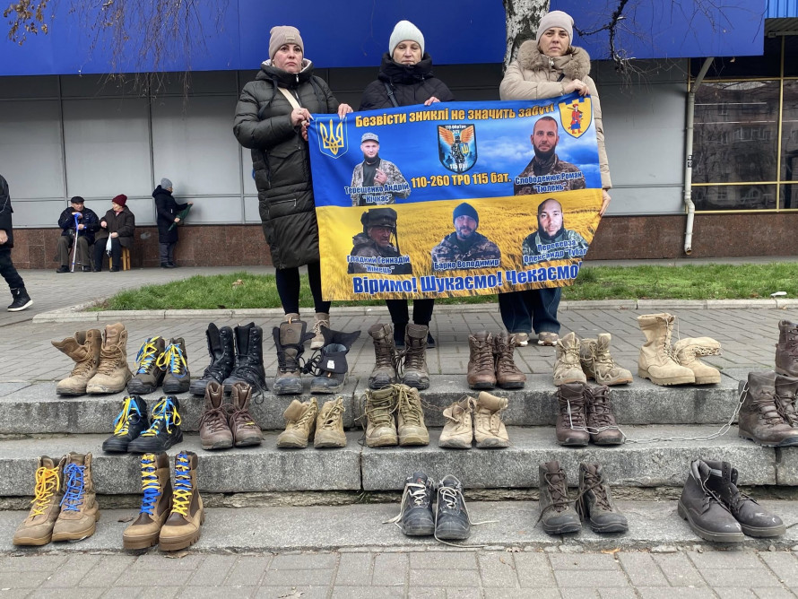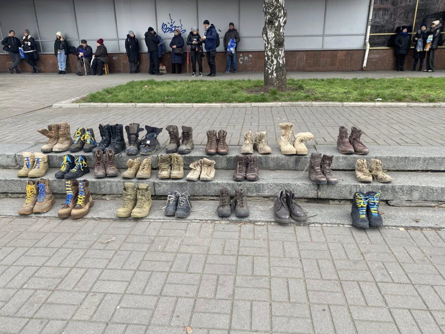 Рідні військовополонених виставили берці на центральному проспекті Запоріжжя