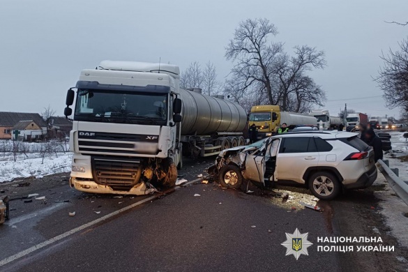 Водій автомобіля "Toyota RAV4" не обрав безпечної швидкості руху, не впорався з керуванням, виїхав на зустрічну смугу та зіткнувся з вантажівкою "DAF XF".