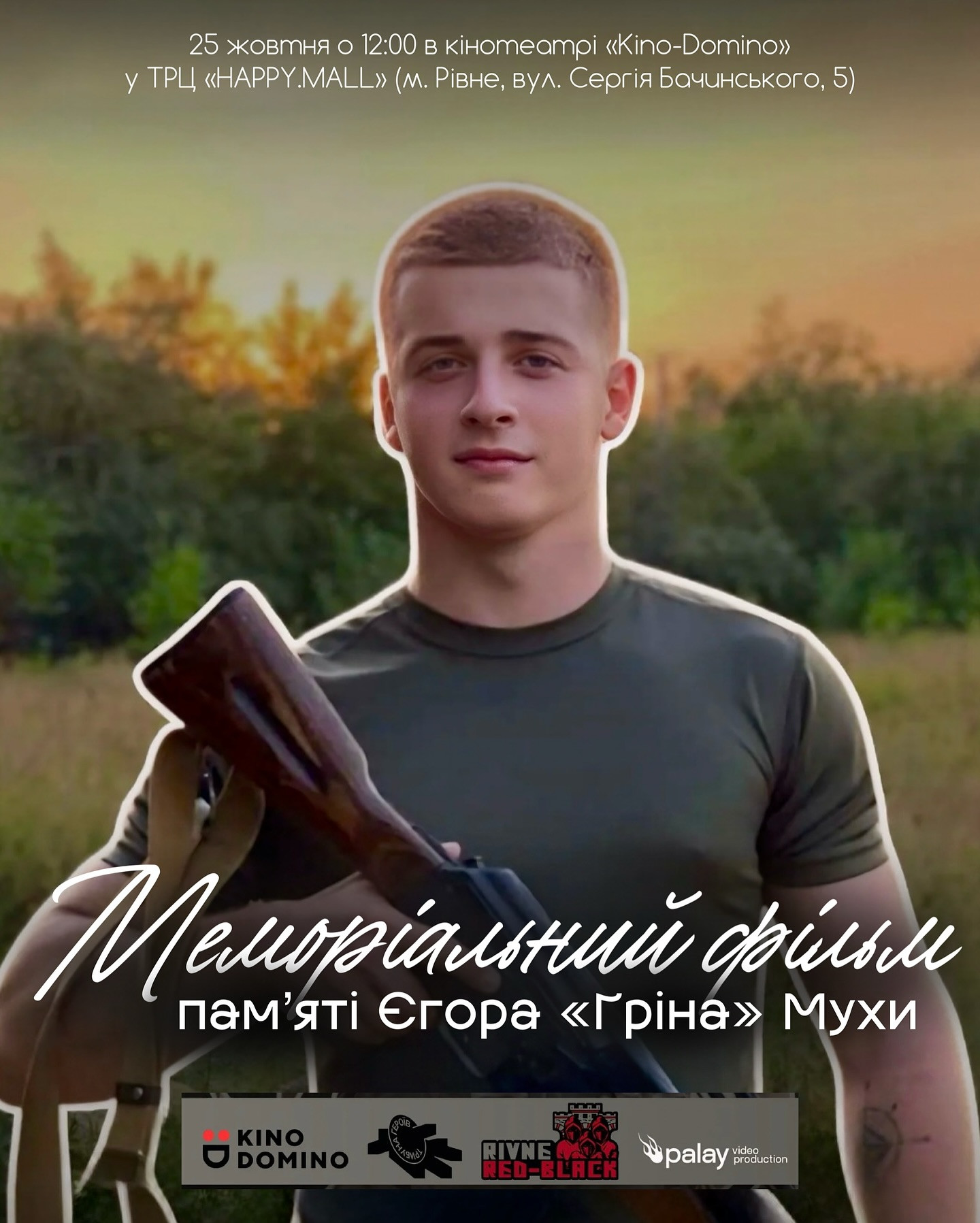 Цієї суботи, 25 жовтня, о 12:00 год у кінотеатрі «Kino-Donino», що у ТРЦ «HAPPY. MALL» (вул. С. Бачинського, 5) відбудеться показ документального фільму «Єгор «Грін» Муха» від фонду «Трибуна Героїв» та Palay Video Production.