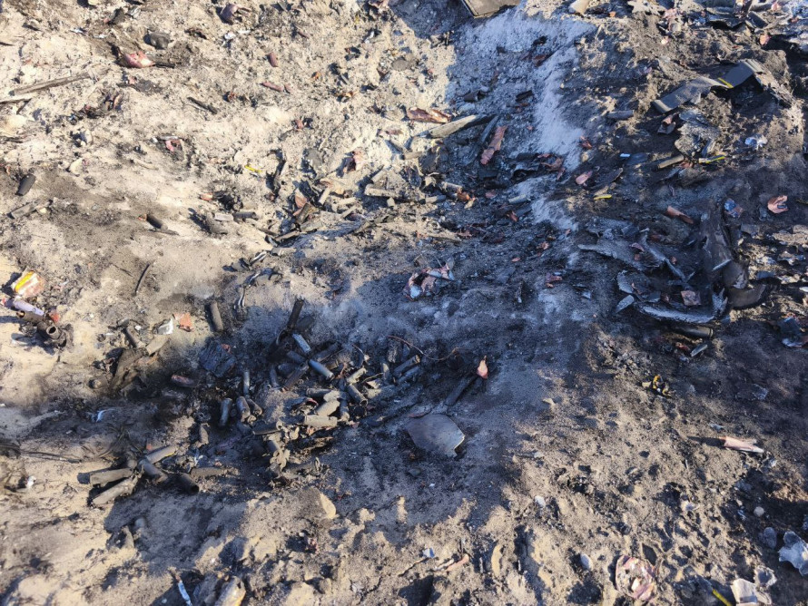 Також там утворилася воронка площею близько 9 квадратних метрів. Фахівці відібрали проби ґрунту для подальших досліджень.