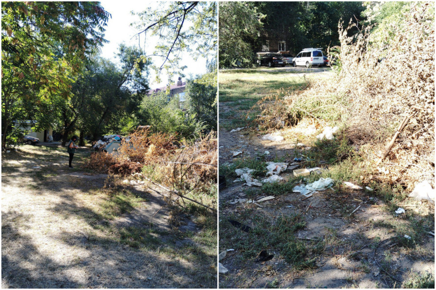 На підставі звернення громадян фахівці провели виїзне обстеження двору та прилеглої території. Під час перевірки вони знайшли місце стихійного складування відходів площею приблизно 70 квадратних метрів.