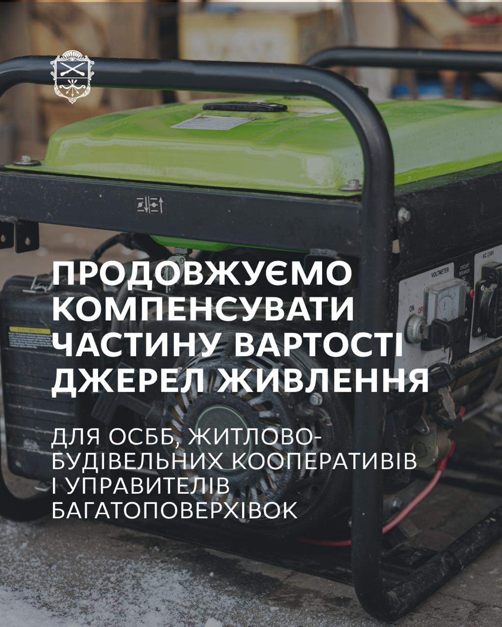 ОСББ, житлово-будівельні кооперативи та управителі багатоквартирних будинків мають можливість купити альтернативні джерела живлення й отримати часткову компенсацію вартості від міськради. Це рішення, яке допомагає мешканцям зменшити фінансове навантаження і водночас підсилити енергетичну стійкість будинків.